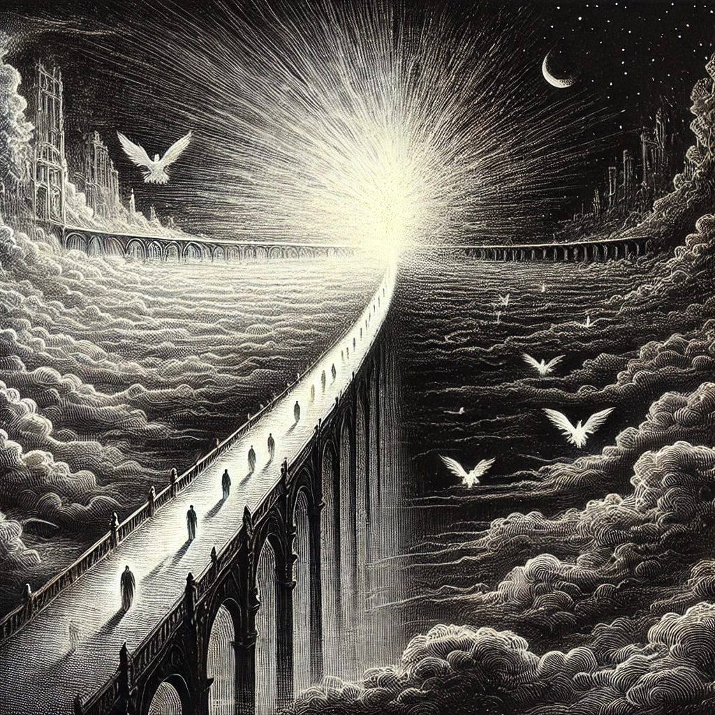 This poem is inspired by the idea that we exist in a realm suspended between the transcendent light and the transcendent dark—a world neither wholly one nor the other, but caught in the balance of both. Like a pendulum between opposing infinities, we move through a space where endings and beginnings blur, where existence is neither salvation nor damnation but an eternal unfolding.